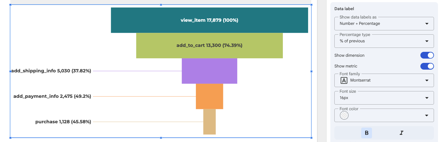 On the other hand, personally, the funnel chart provided by Looker Studio can handle simple needs. But the overly automatic responsive behavior of the elements it includes makes things difficult when you want to add it to a specific area of a page…and keep it easy to read.