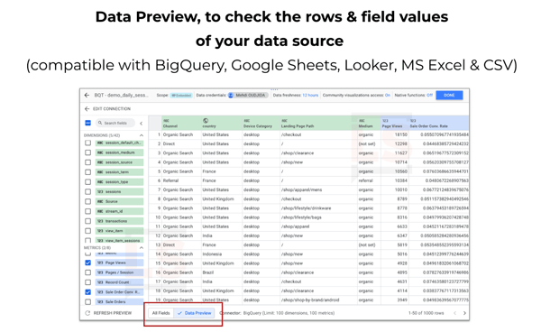 Explore easily the data of your sources with a table visualization like inside BigQuery StudioWarning for external links